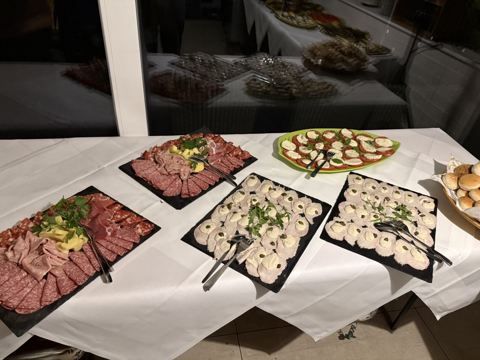 Zwischen den einzelnen Buffetgängen wurden die Lose für die Tombola verkauft, die Siegerehrung vorgenommen und gemeinsam Weihnachtslieder gesungen.